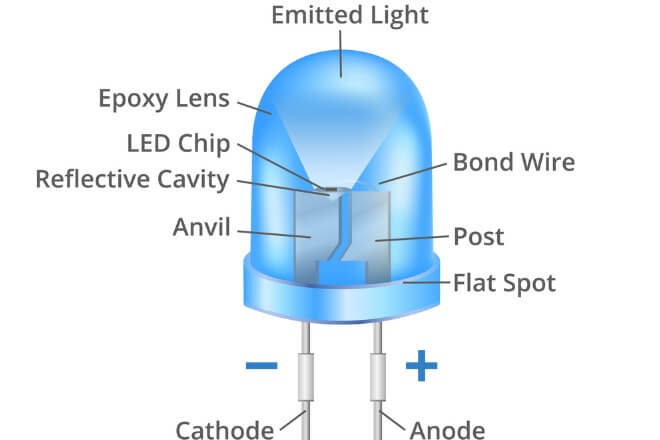 An LED light is a light-emitting diode (LED) that produces a narrow band of visible light when an electric current passes through it. LEDs are common light sources for artificial lighting and electronic screens because they are energy-efficient, affordable and sturdy.