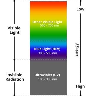 So, about one-third of all visible light is considered high-energy visible (HEV) or “blue” light.