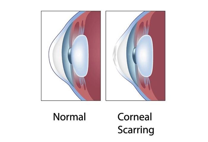 What causes corneal scarring?