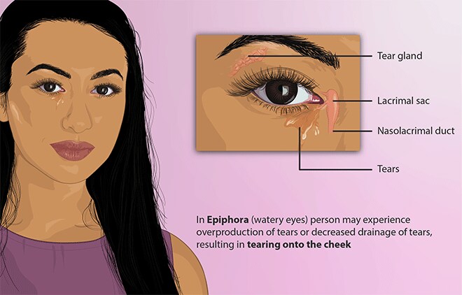 Credit: Depiction of a person with Watery Eyes (Epiphora) by myupchar is licensed under CC BY-SA 4.0.