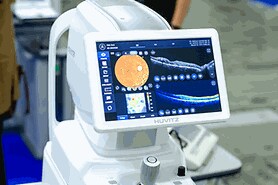 Optical coherence tomography (OCT) – Using light waves, the OCT machine takes cross-sectional images of your retina's tissue layers for further evaluation.
