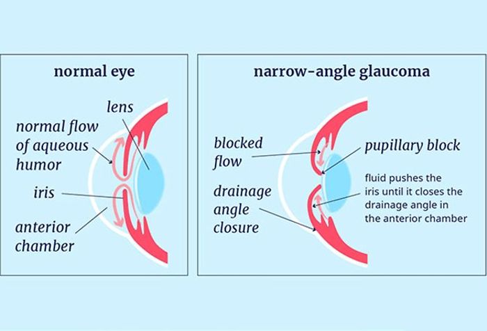 Narrow drainage angles in the eye increases the risk of the drainage angle becoming blocked, resulting in a significant increase in eye pressure and risk of vision loss. If this occurs, narrow-angle glaucoma is usually called angle-closure glaucoma.