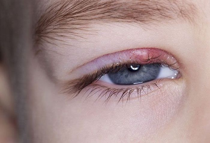 The primary sign of an external hordeolum is a red, inflamed bump that looks like a pimple in or near the eyelashes. Internal hordeola form inside the eyelid, so you can’t see them without everting (flipping) the lid.
