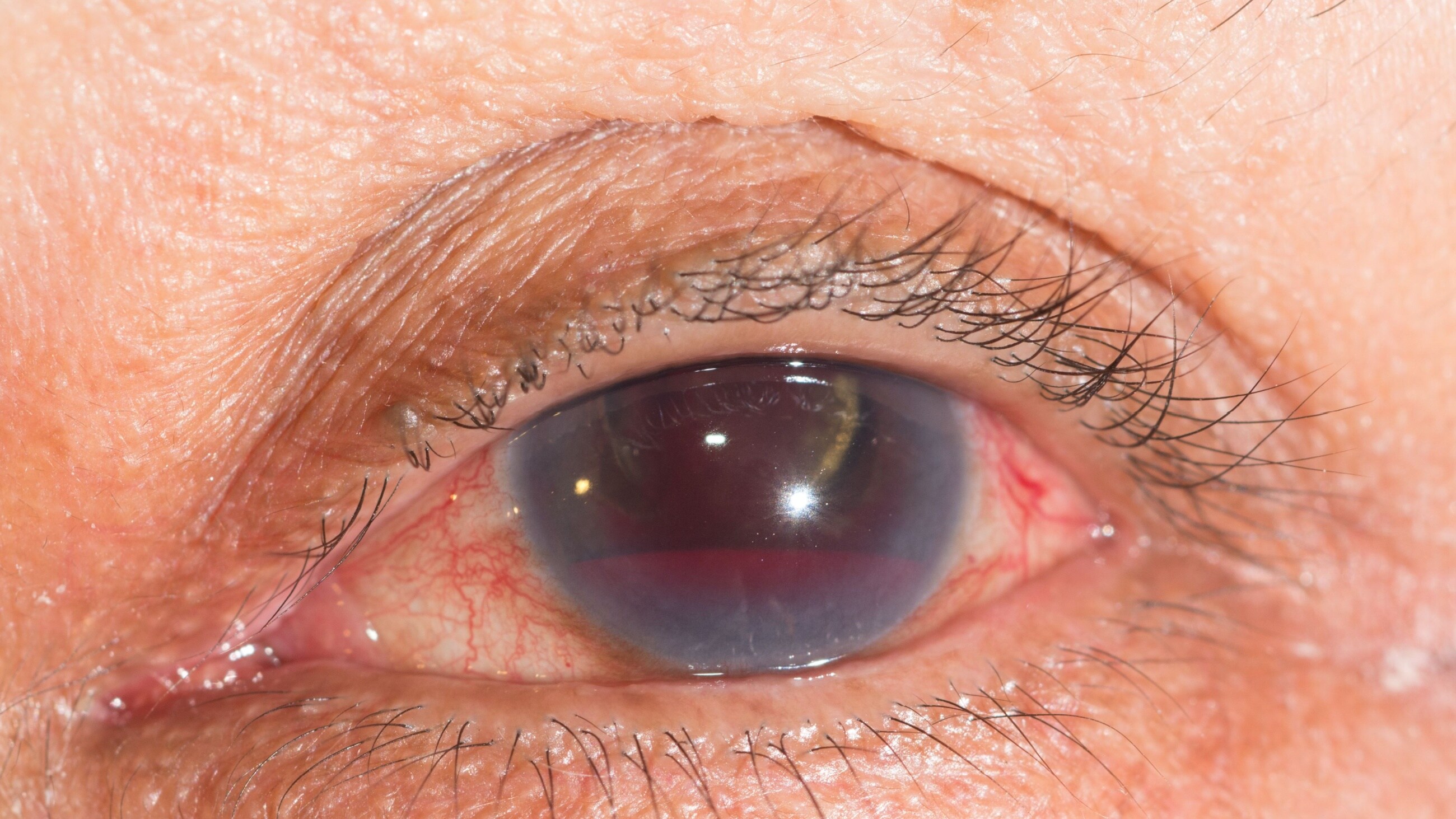 - A hyphema is bleeding inside the eye, in the area between the cornea and iris. It is a painful medical emergency that can lead to vision loss if not treated right away.