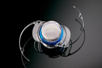 The Implantable Miniature Telescope magnifies central images for the retina, reducing the perceived relative size of the central blind spot. (Image: VisionCare Ophthalmic Technologies)