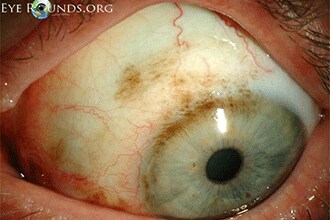 - Complexion-associated melanosis – Usually bilateral (in both eyes), flat without cysts and with fuzzy borders. More common in darkly pigmented individuals, it becomes more visible with age. This is the most common type of pigmentation of the conjunctiva and it does not turn into melanoma.