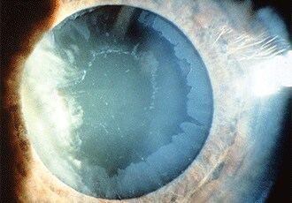 Pseudoexfoliation [Image credit: Permission granted by © 2022 American Academy of Ophthalmology]