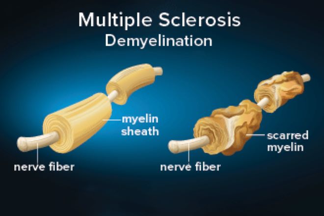 MS is an autoimmune disease that results in inflammation in the myelin — the protective layer that surrounds nerve fibers. The inflammation damages the myelin surrounding the nerves. As a result, signals traveling in the injured part of the optic nerve are interrupted or delayed. This can affect the optic nerve and the areas in the brain that control eye movement. This can lead to blurry vision, double vision, nystagmus and other vision issues.