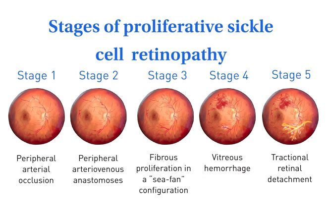 Proliferative sickle cell retinopathy happens when the restricted blood flow has been going on long enough to cause major changes and complications. These can include: