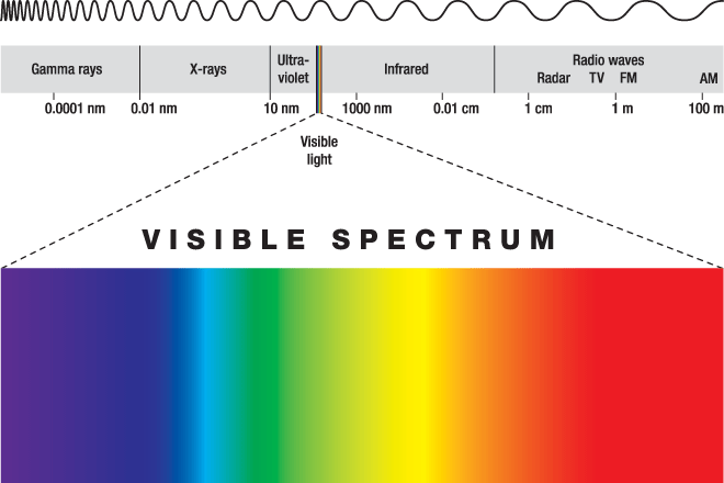 These colors make up the visible light spectrum. It's the tiny slice of the electromagnetic spectrum we can see with our eyes.