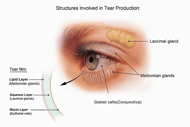 Lacrimal glands, meibomian glands and dry eye syndrome