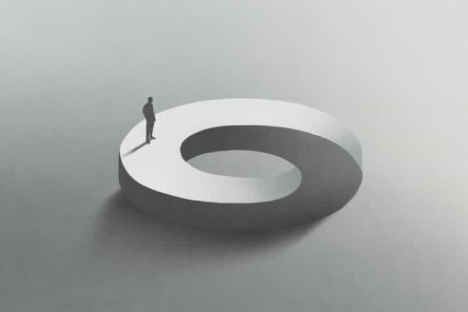 This circular path is an example of a cognitive illusion. The shape is impossible to trace with your eyes because if you try to follow one side, it will bring you to all the other sides.