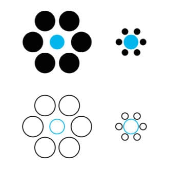 The Ebbinghaus illusion, also known as the Titchener circles, plays with your perception of an object's size.