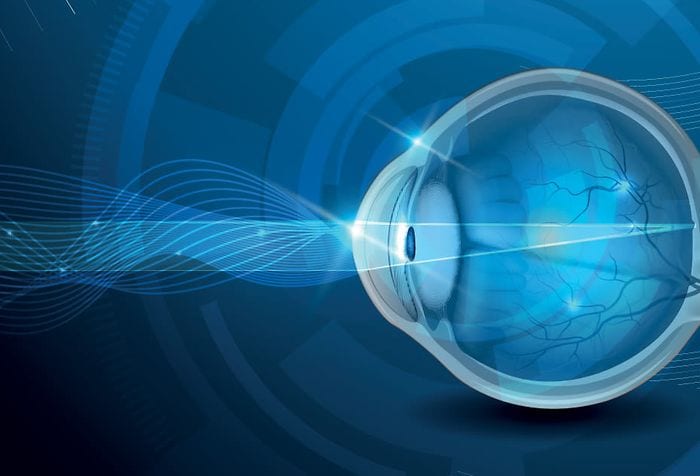 The eye’s crystalline lens is located directly behind the pupil and further focuses light rays. Through a process called accommodation, this lens automatically helps the eye focus on near and approaching objects, like an autofocus camera lens.