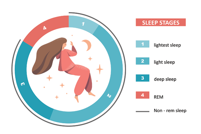 Stage two – light sleep when your body temperature drops and your heart rate and breathing regulate