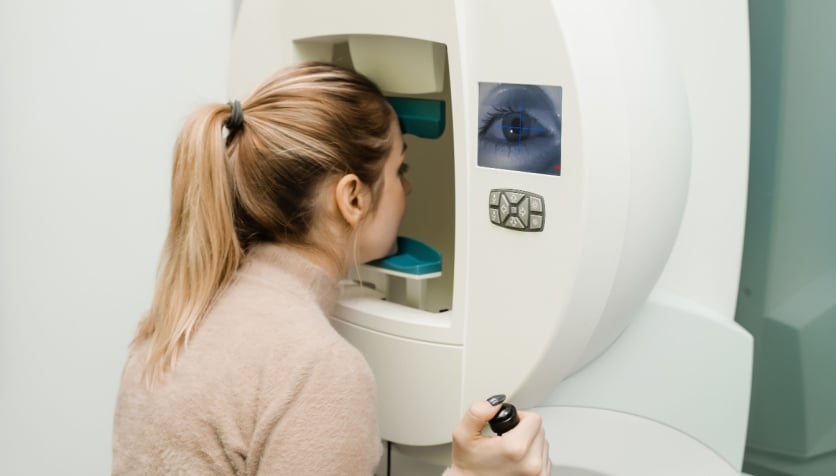 In the United States, the standard placement of the eye chart is on a wall that’s 20 feet away from your eyes. However, since many eye doctors have offices shorter than 20 feet long, the eye chart may hang behind the patient chair and reflect onto mirrors to simulate a distance of 20 feet.