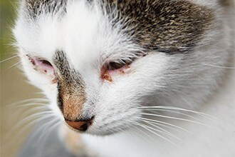 When a cat’s eyes work properly, a thin film of tears lubricates the eyes, and excess fluid drains into the nasolacrimal ducts, which are located in the inside corners of the eyes, and into the nasal cavity. These ducts drain tears into the back of the throat and nose, but when there is damage to the ducts, they can become clogged, creating discharge.