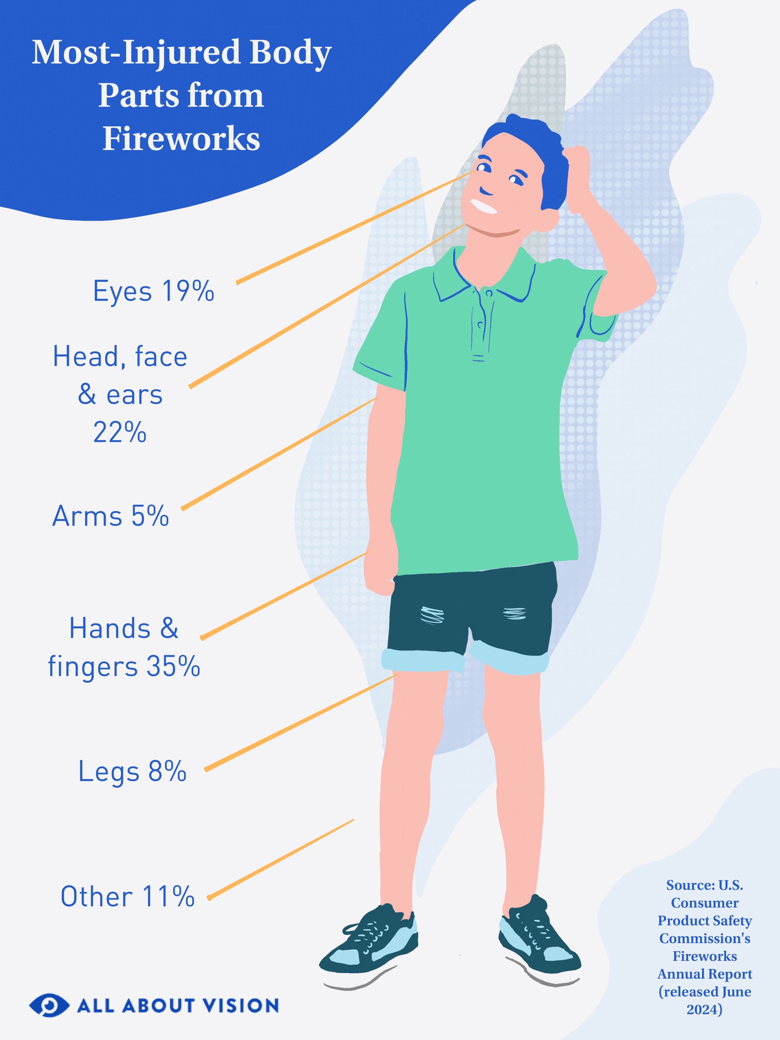 Unfortunately, even fireworks as simple as sparklers can lead to serious injury. Approximately 900 injuries were reportedly caused by sparklers in 2020. The body parts injured most by fireworks accidents are the eyes, head, face, ears and hands.