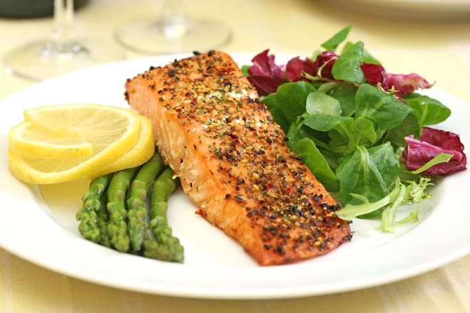 Grilled salmon is an excellent source of omega-3 fatty acids to fight dry eyes.