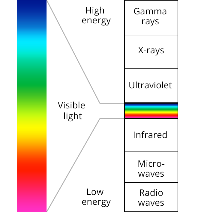 While many people refer to ultraviolet radiation as "UV light," this term technically is incorrect because you cannot see UV rays. Ultraviolet radiation is invisible.