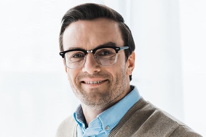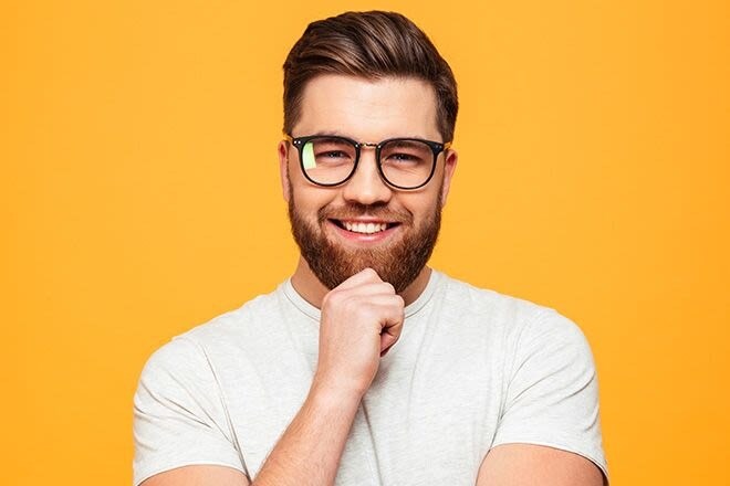 A square face shape has a strong, horizontal jawline, a broad forehead and balanced cheekbones. If this description fits your face, then you are in luck. There are many different eyeglasses styles that will highlight your strong features.