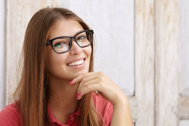 Glasses in light colors with minimal frames will set off your features beautifully. Whether you’re looking for a vintage look or something polished and sophisticated, there are hundreds of styles and colors to choose from.