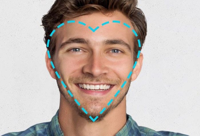 A heart-shaped face is widest at the forehead and tapers down to a narrow chin. This face shape tends to have high cheekbones with a mixture of curved and angled features. Some heart-shaped faces are rounder, while others are more linear like an upside down triangle.