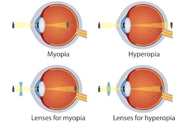 The lenses in your prescription glasses work by diverging or converging the incoming light rays, depending on whether you have myopia or hyperopia. The curvature of a corrective lens depends on the type and severity of the refractive error.