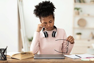 Advise your child to follow the 20-20-20 rule by looking at least 20 feet away, every 20 minutes, for 20 seconds when working at a computer for several hours.