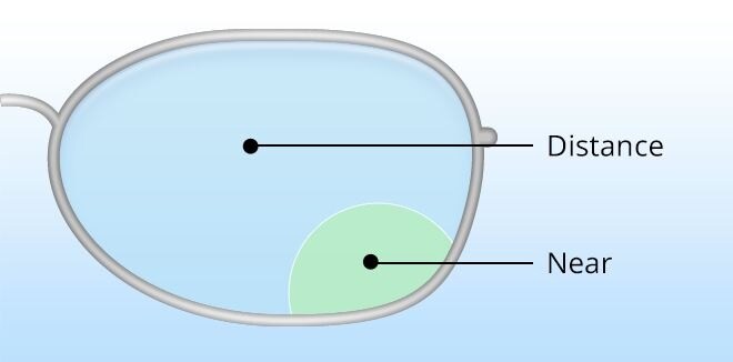 A round-top bifocal can be used to create an occupational lens called a "golfer's bifocal." The small, round reading segment is placed low and in the outside corner of one lens only. Typically the right lens has this segment for right-handed golfers, and the left lens has the segment for left-handed golfers.