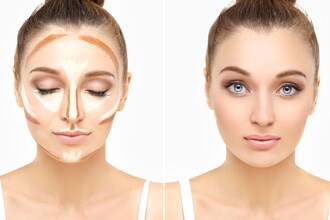 Be sure to fully blend the highlighting foundation and bronzer with your natural-colored face makeup.
