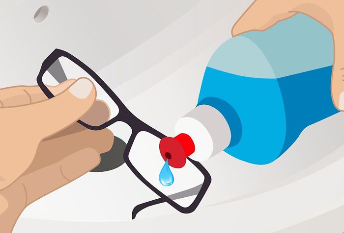 3. Apply a small drop of lotion-free dishwashing liquid to each lens.