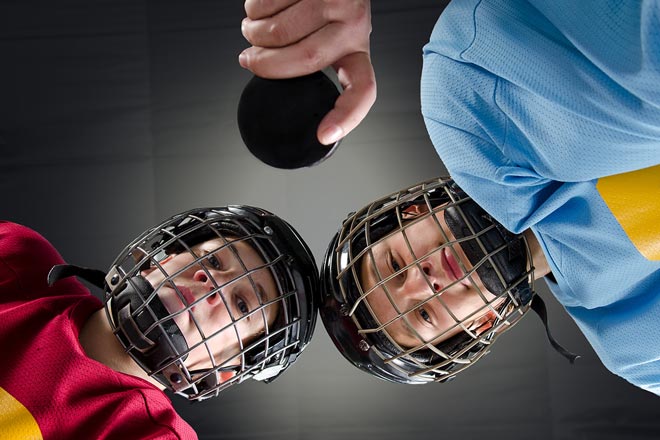 Never let your child play hockey without wearing a face mask. Hockey pucks are very dense and hard, and when one hits an eye at high speed, it can cause vision loss and even total blindness.