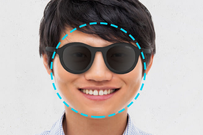 Because overly wide frames exaggerate the narrowness of your face, look for sunglasses that extend no more than a couple millimeters beyond your hairline.