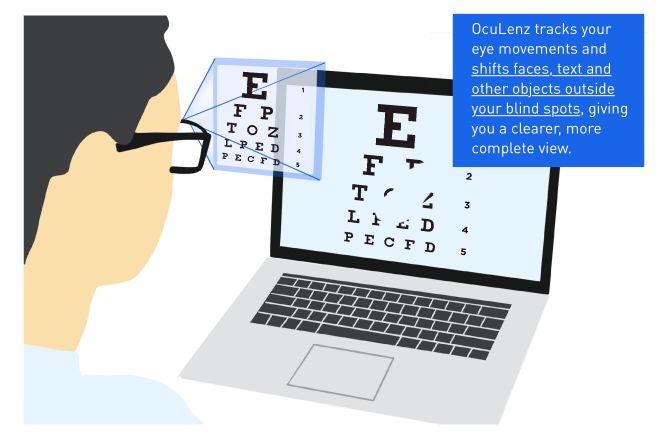 In real time, OcuLenz tracks eye movement and rearranges faces, text and other objects outside someone's blind spots. This creates a fuller view that wouldn't have been possible otherwise.