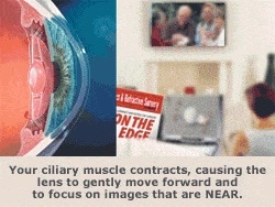This causes the focusing area of the IOL to move forward. The forward position provides some added ability to focus at near, or "to accommodate."