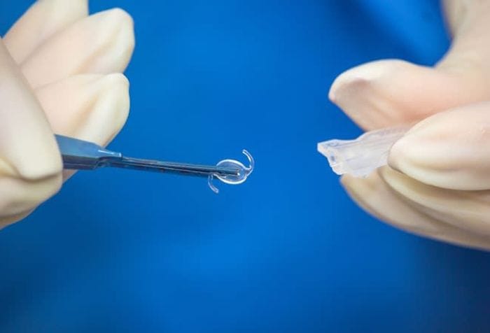 An IOL is placed inside the lens capsule that held the original, natural lens. It is held in place by "haptics," which are arm-like structures on each side of the IOL.