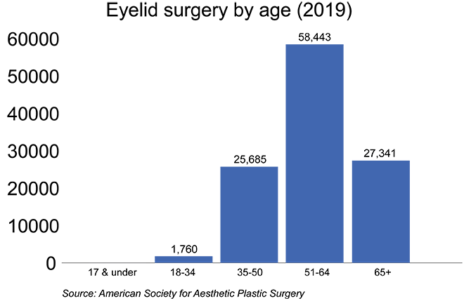 An upper blepharoplasty is used to remove excess skin and fat above the eye. [Image credit: Petra Howe]