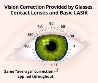 Conventional LASIK surgery attempts to recreate the vision correction that your eyeglass prescription provides.